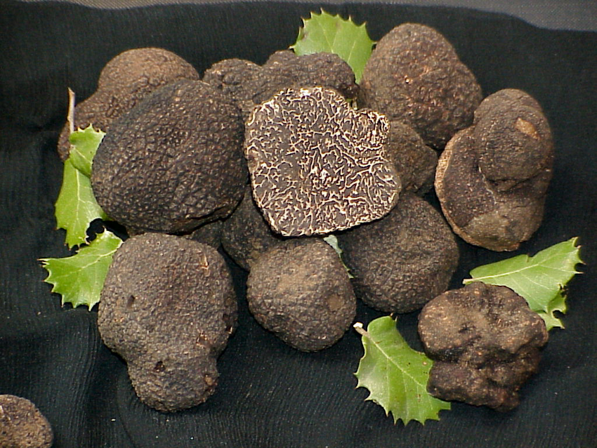 La truffe d’automne, bien que botaniquement identique à la truffe d’été, est trouvée plus tard dans l’année dans des lieux plus frais et en altitude. Elle partage la même apparence extérieure mais possède un intérieur plus foncé et une saveur nettement plus prononcée.